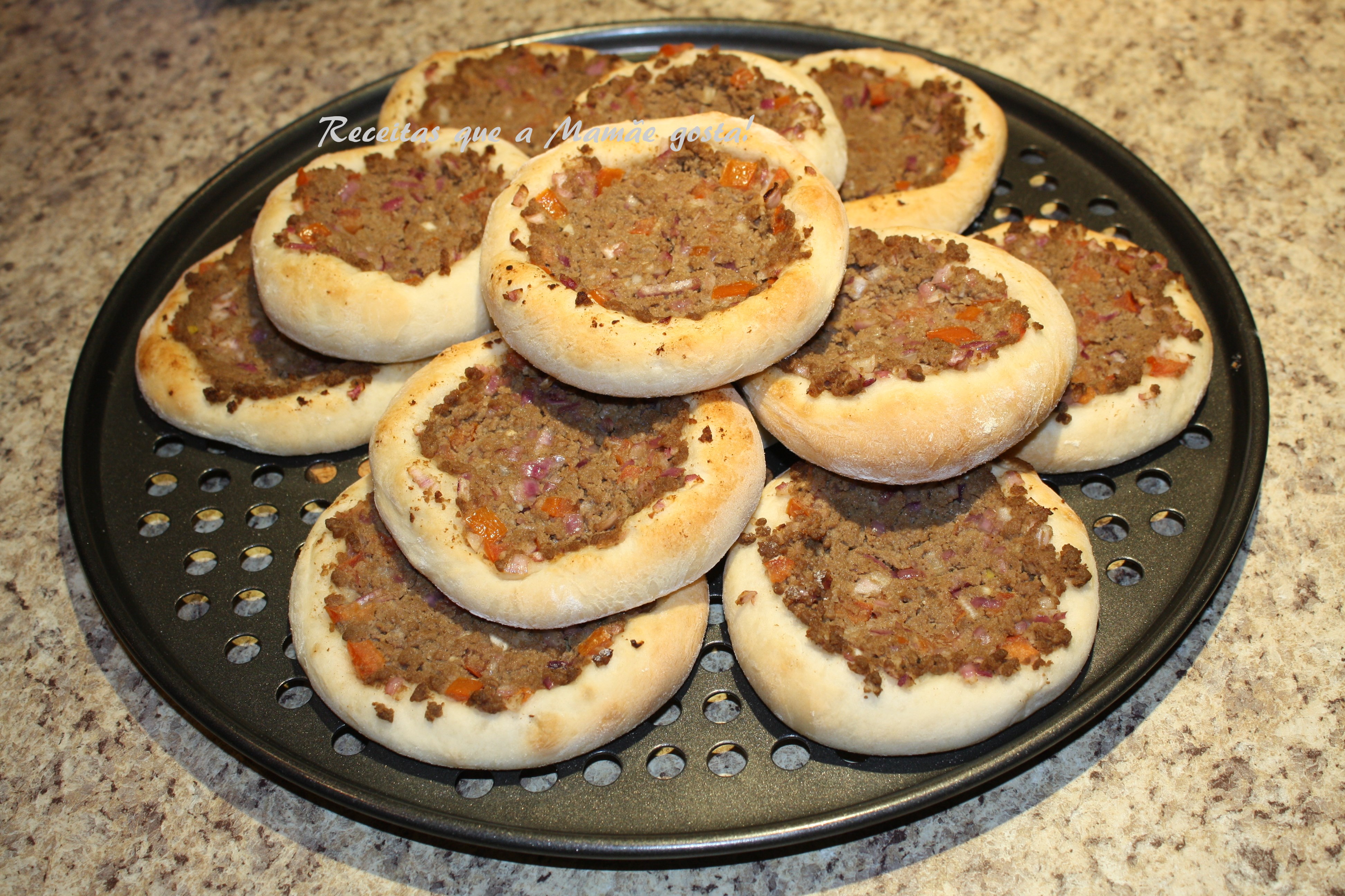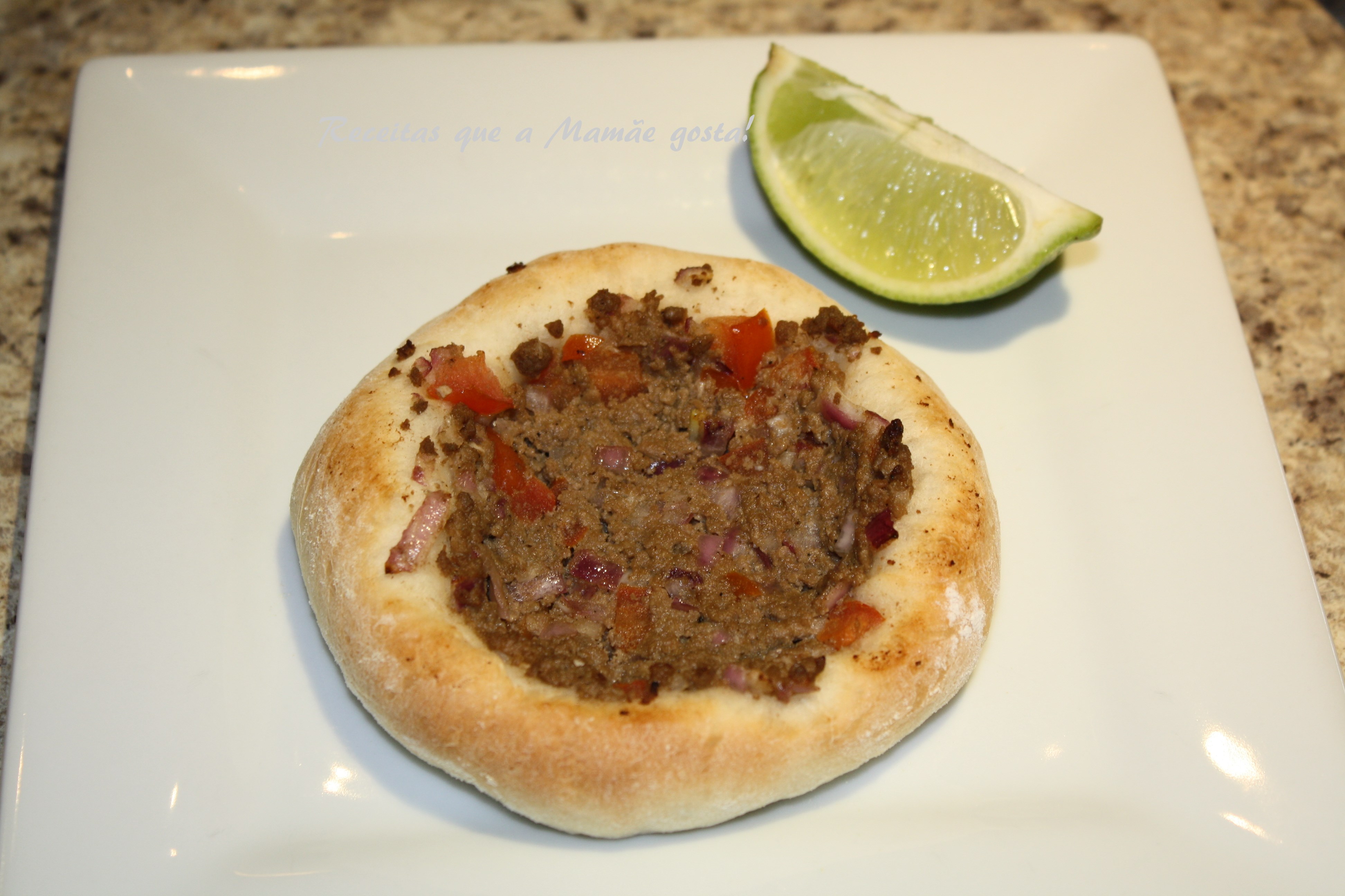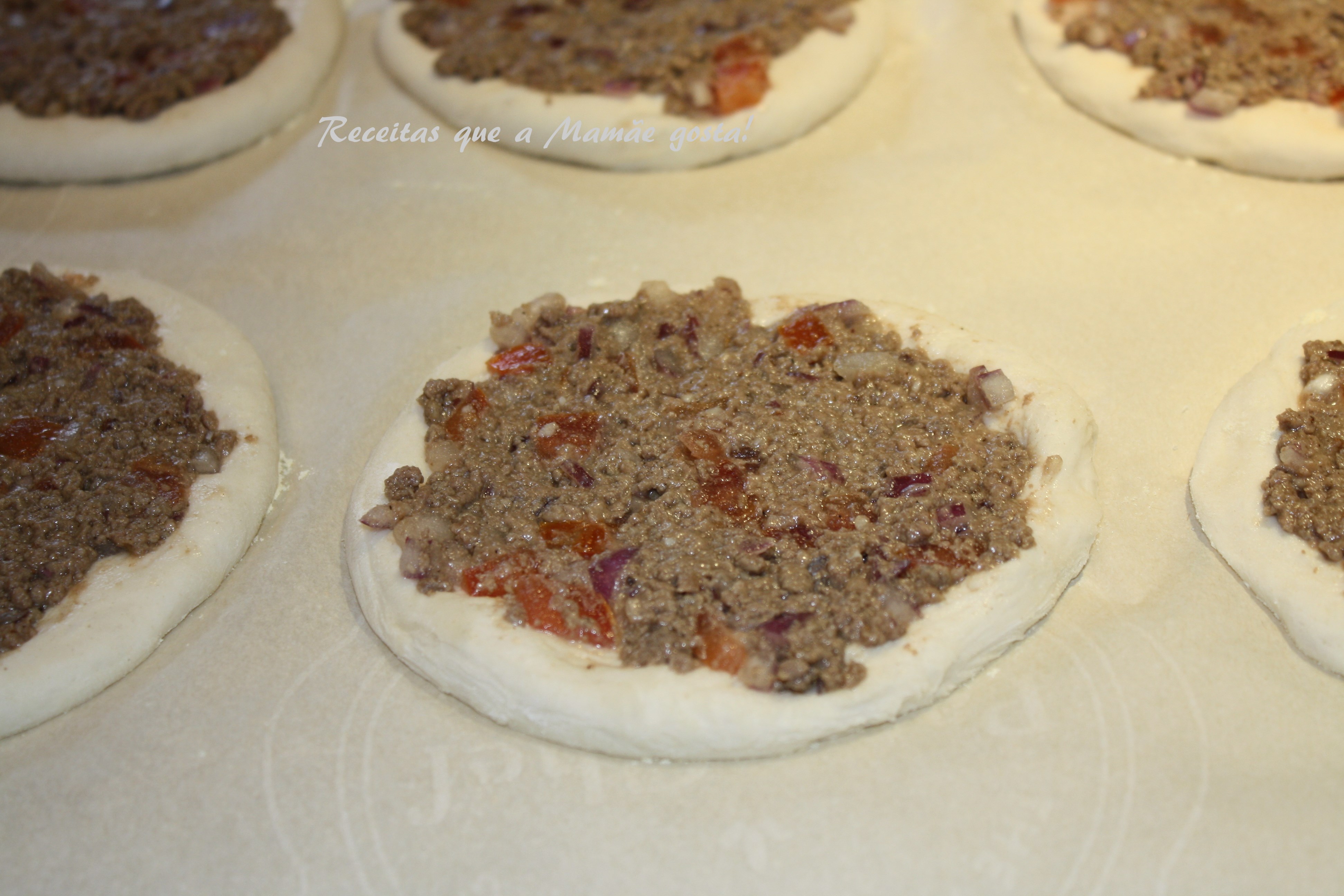 Colocar o recheio de carne moida e levar ao forno pré-aquecido 300C, por aproximadamente 3 a 4 minutos.