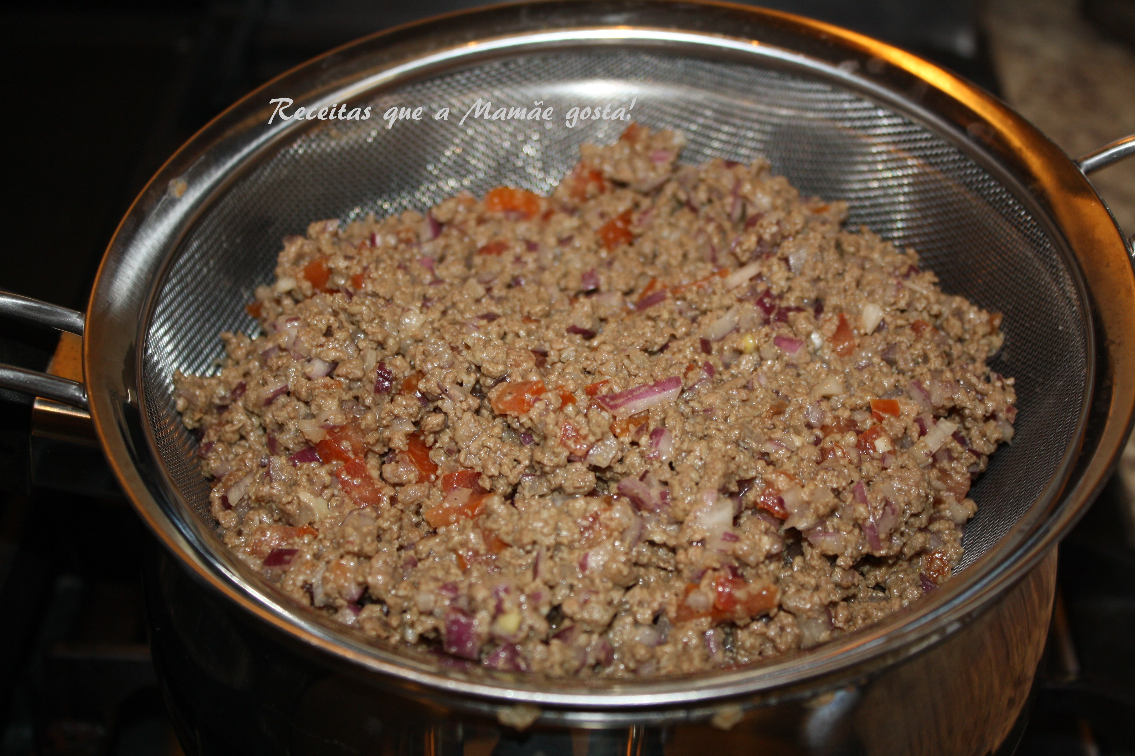 Antes de usar, coloque a carne numa peneira e deixe escorrer.