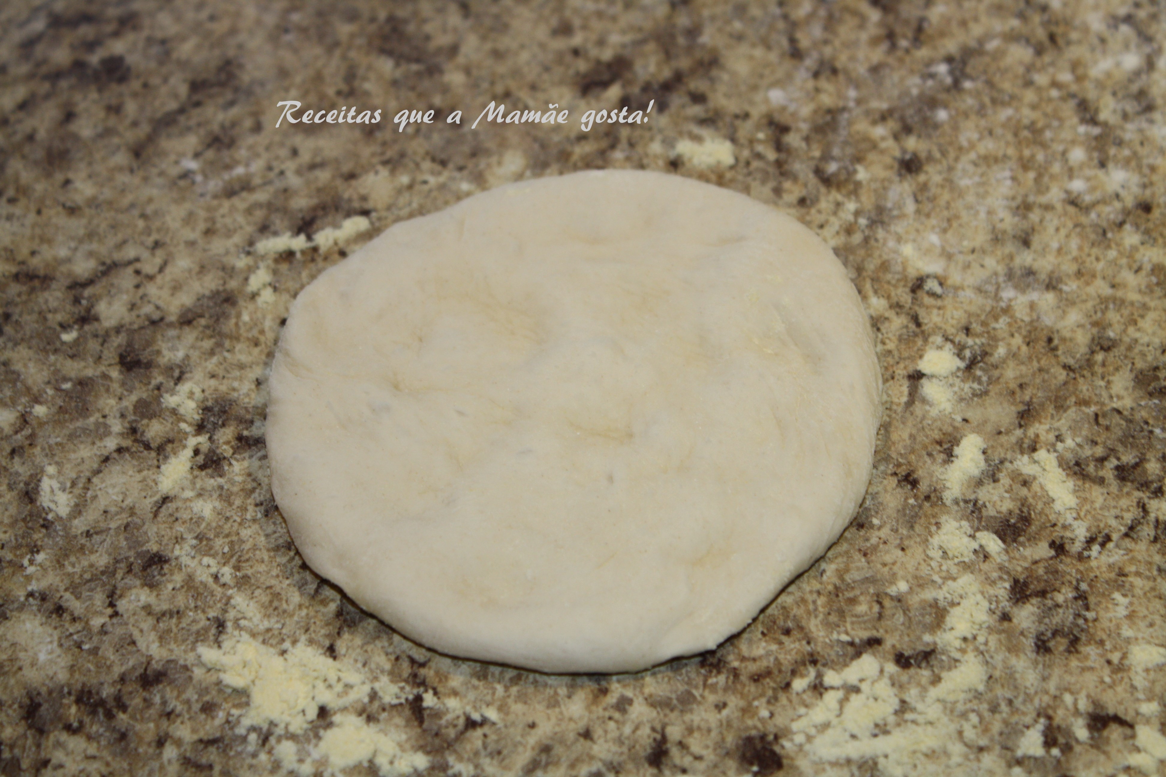 Dividir a massa em bolinhas de aproximadamento 50 gramas e ir abrindo cada bolinha com as pontas dos dedos sobre um mix de farinha com fubá, formando um círculo, como se fosse um ninho.