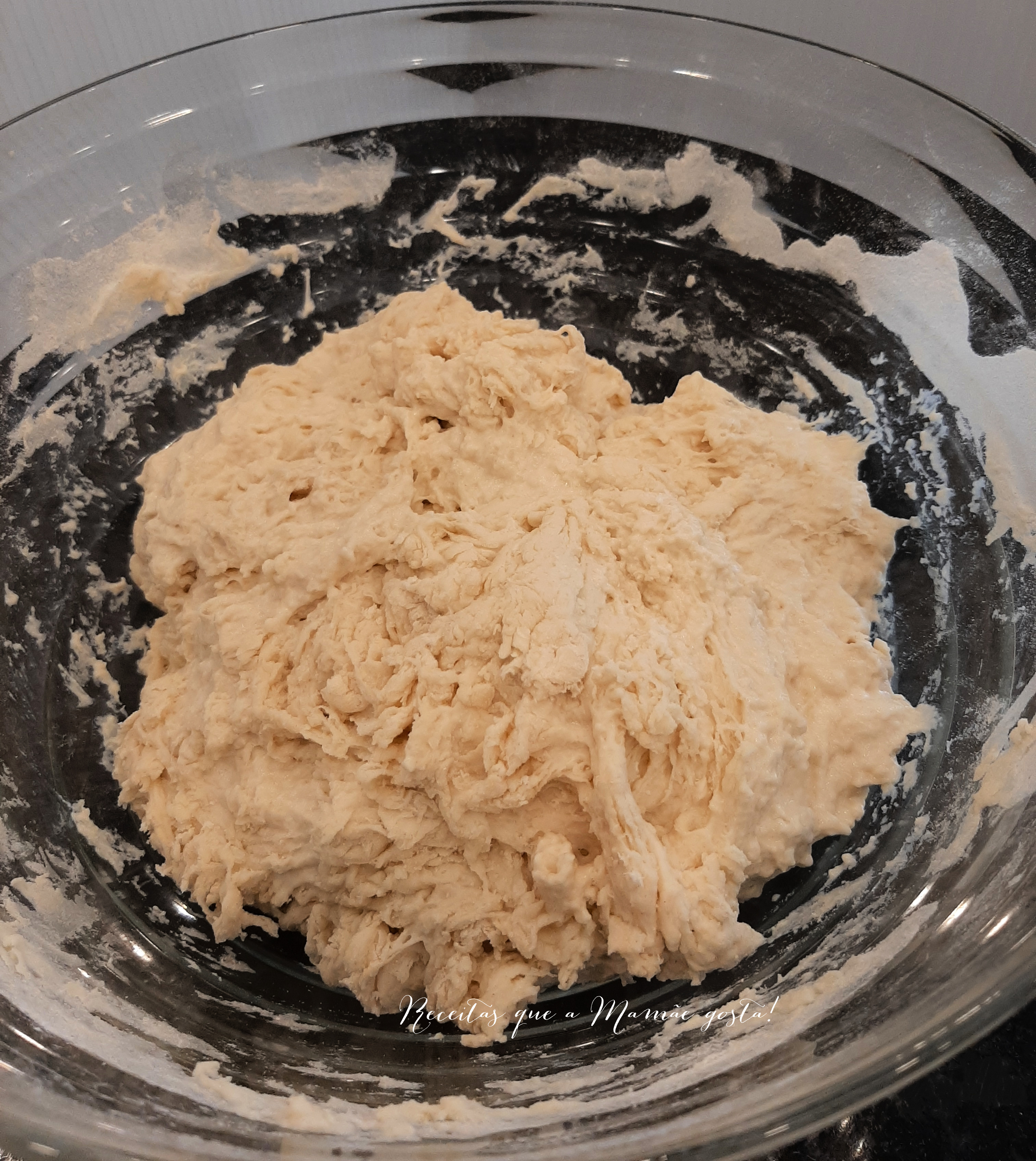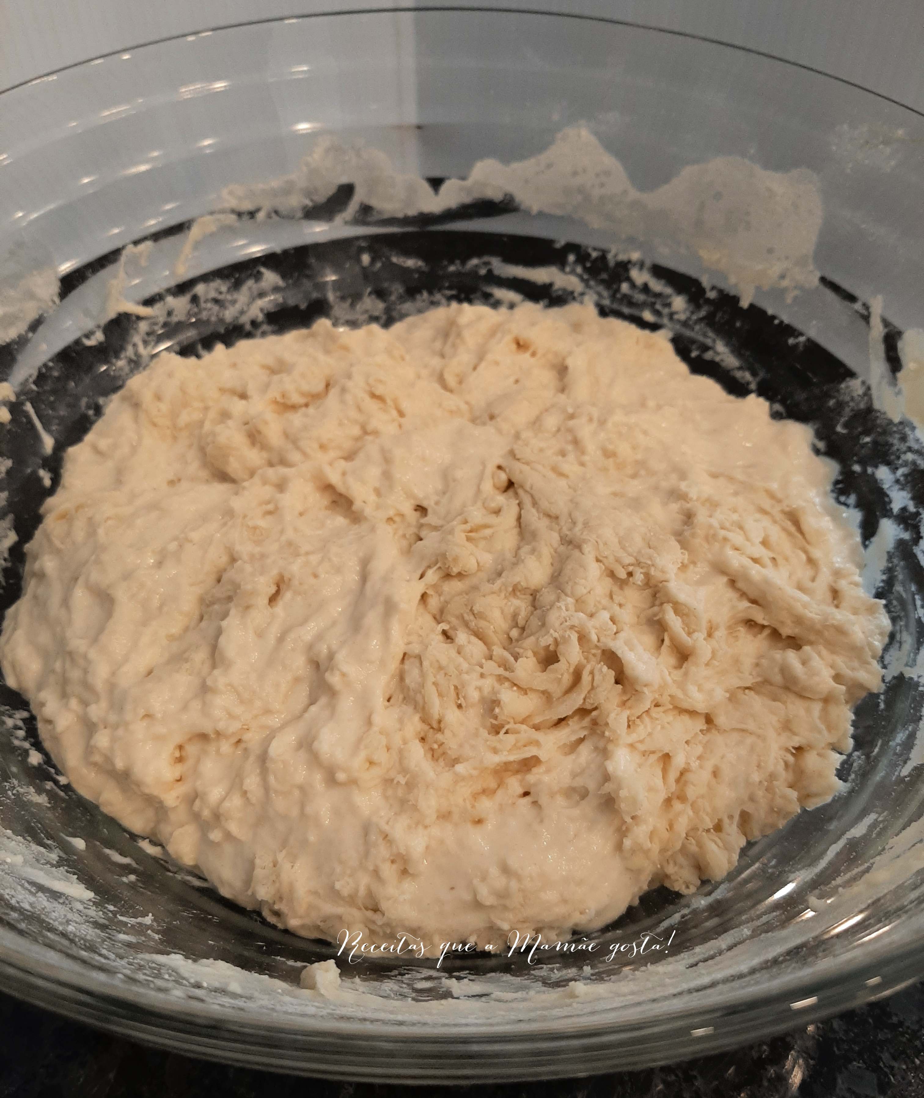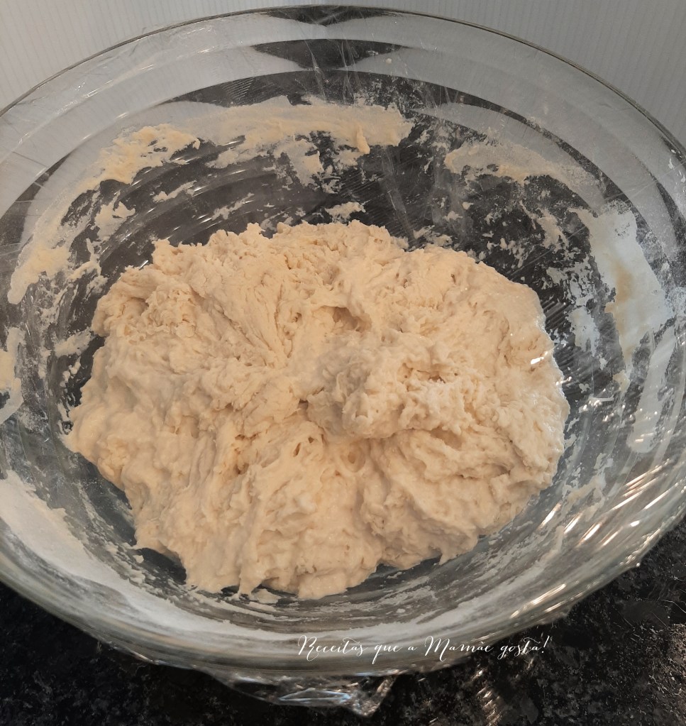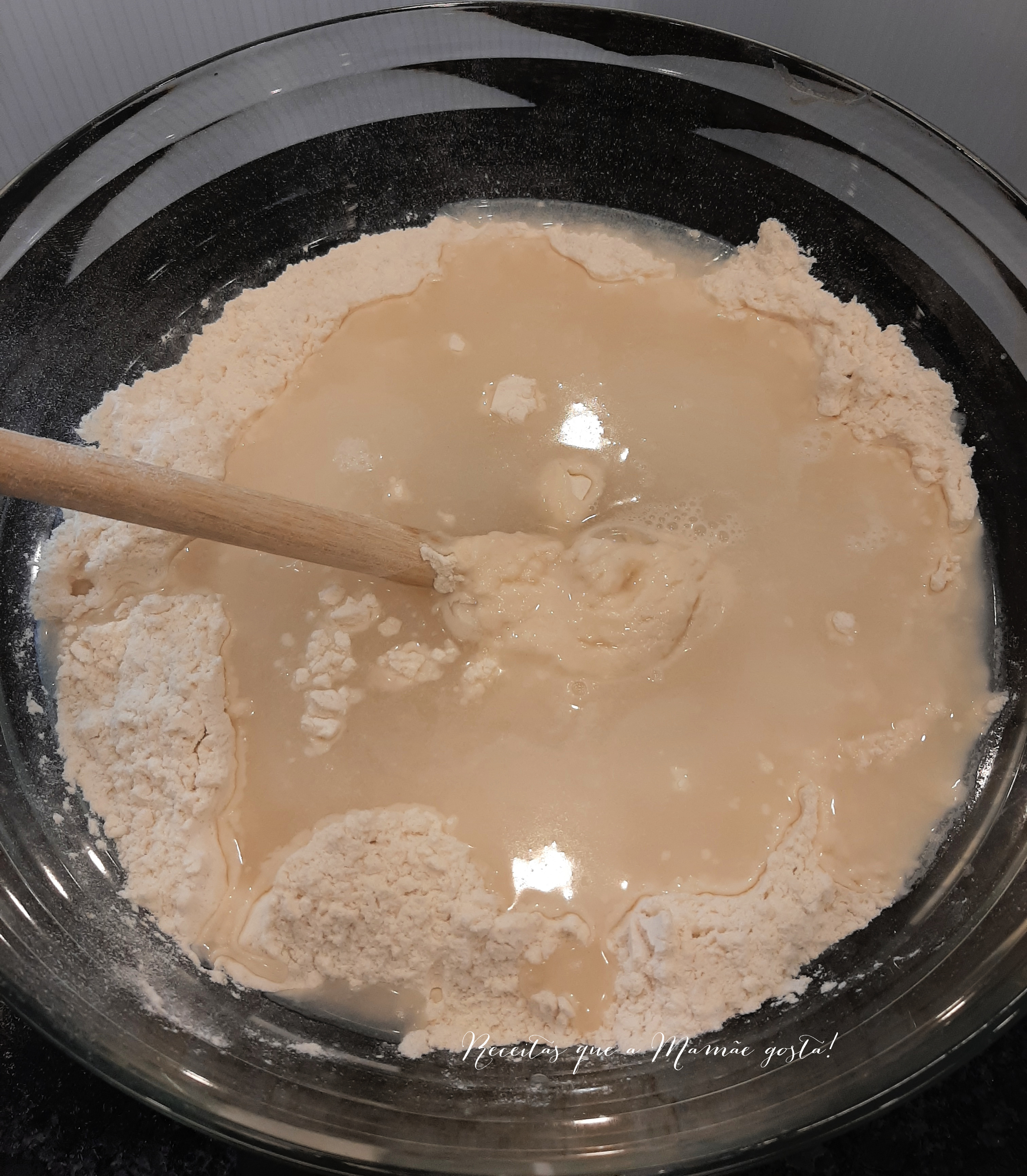 Mexa essa mistura com o cabo de uma colher de pau até que se forme uma massa consistente, porém grudenta…