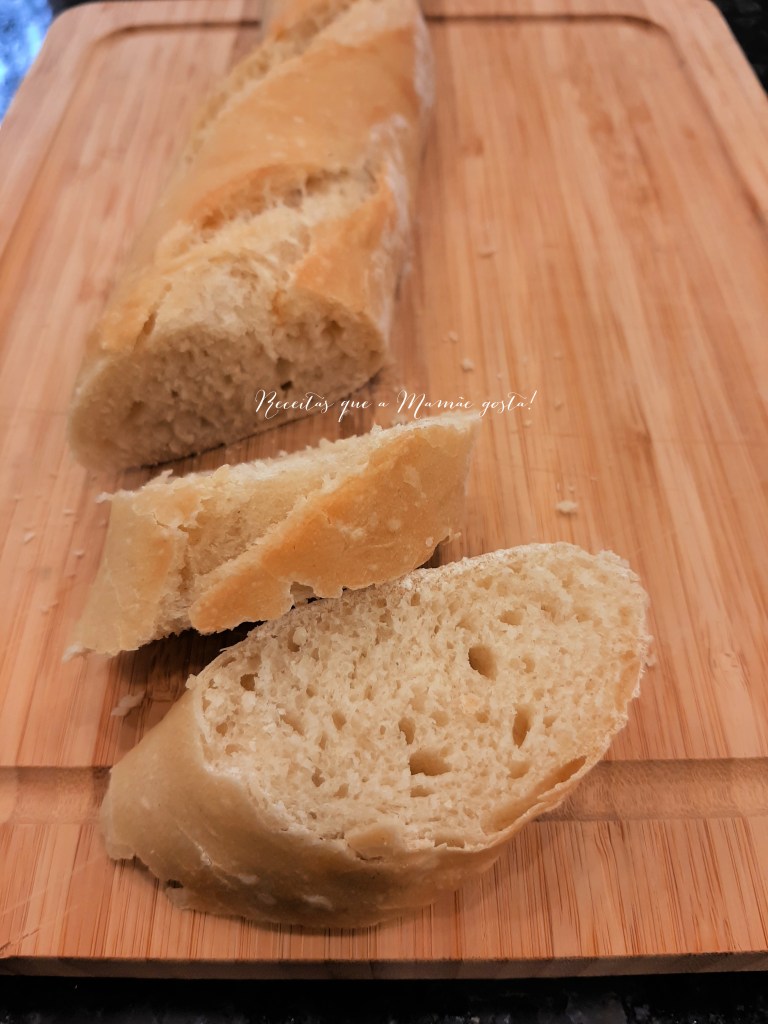 Receita simples e fácil. Mínimo manuseio, longo processo de crescimento, porém valeu muito pelo resultado final. Receita de baguete aprovadíssima!!!