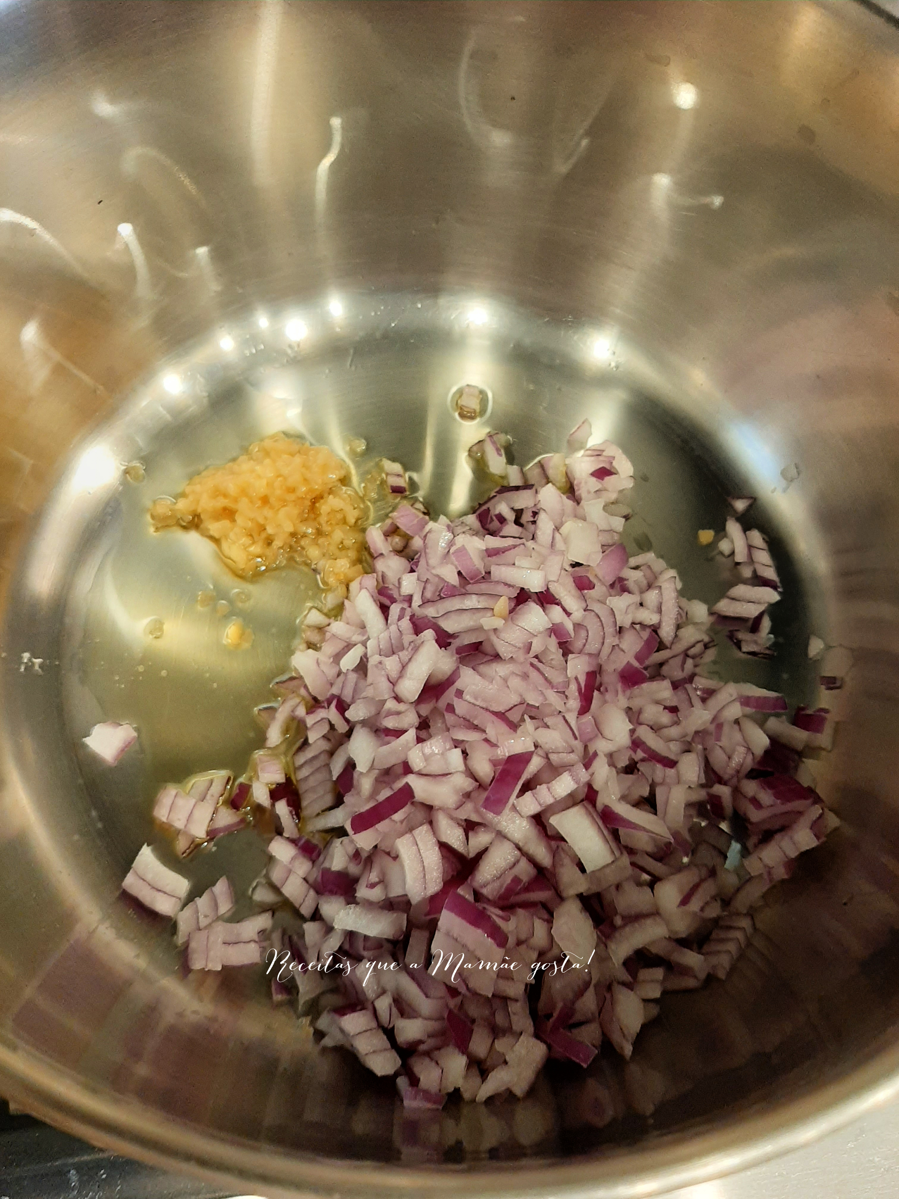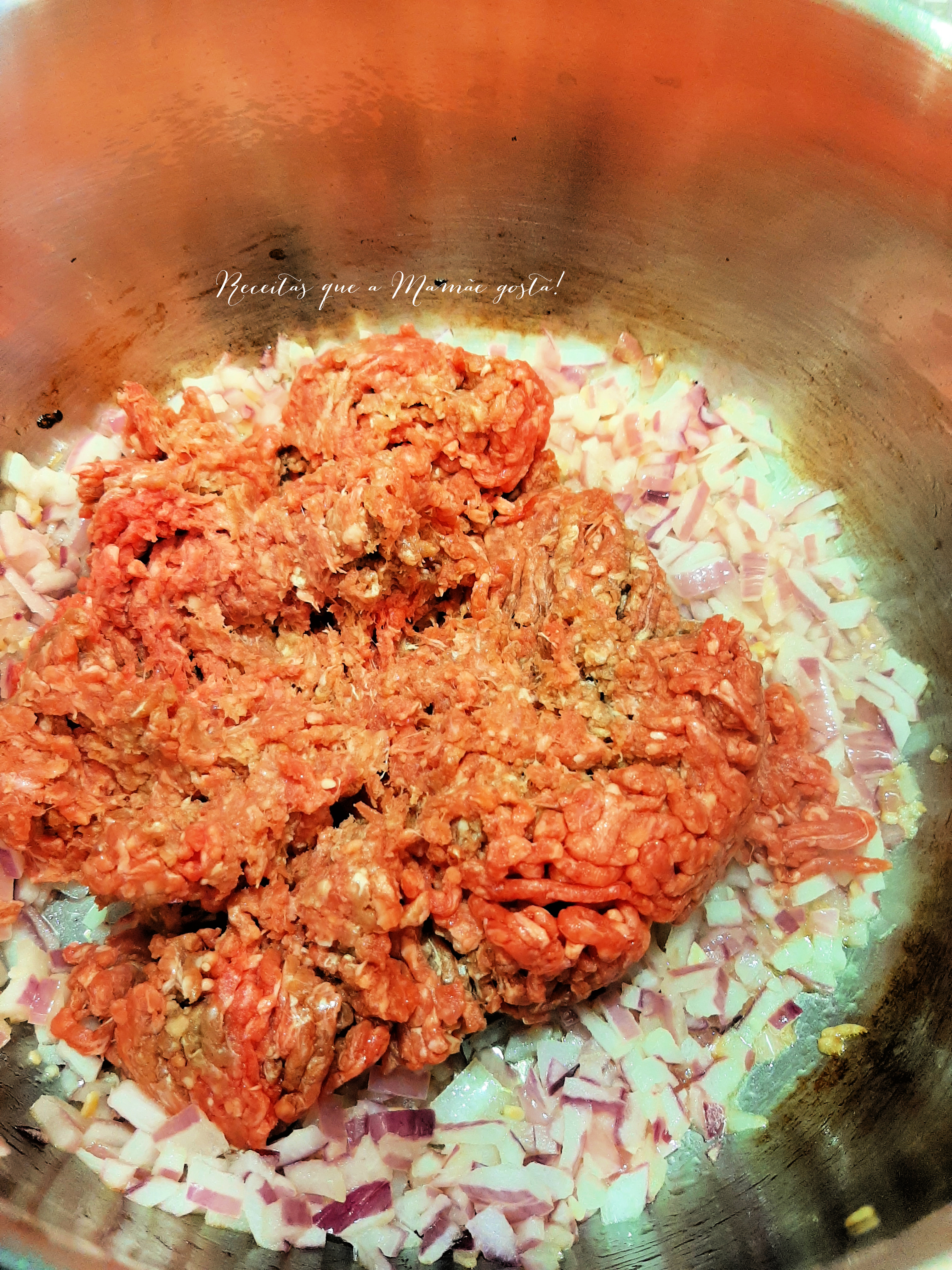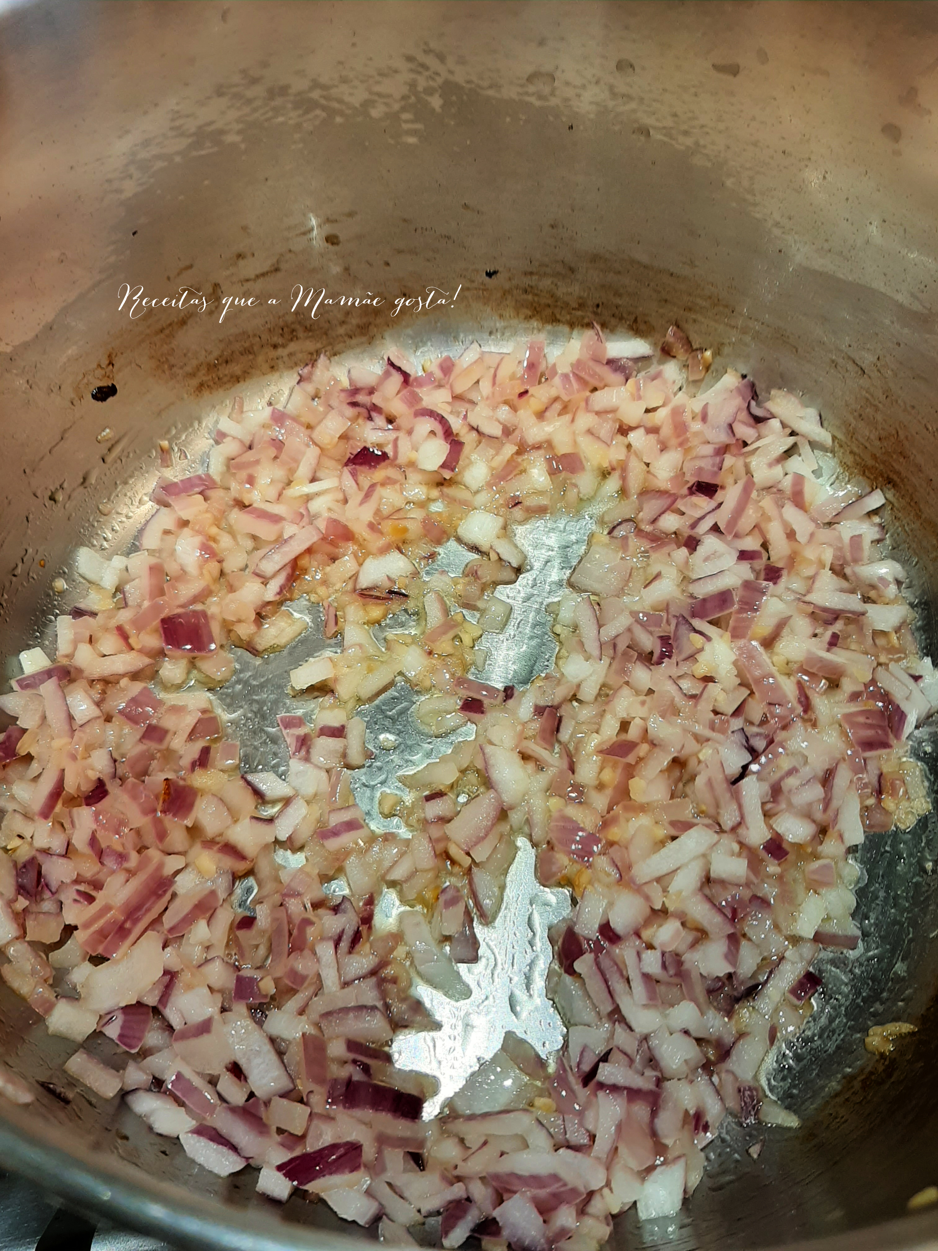 Numa panela com um pouco de óleo, doure a cebola e o alho.