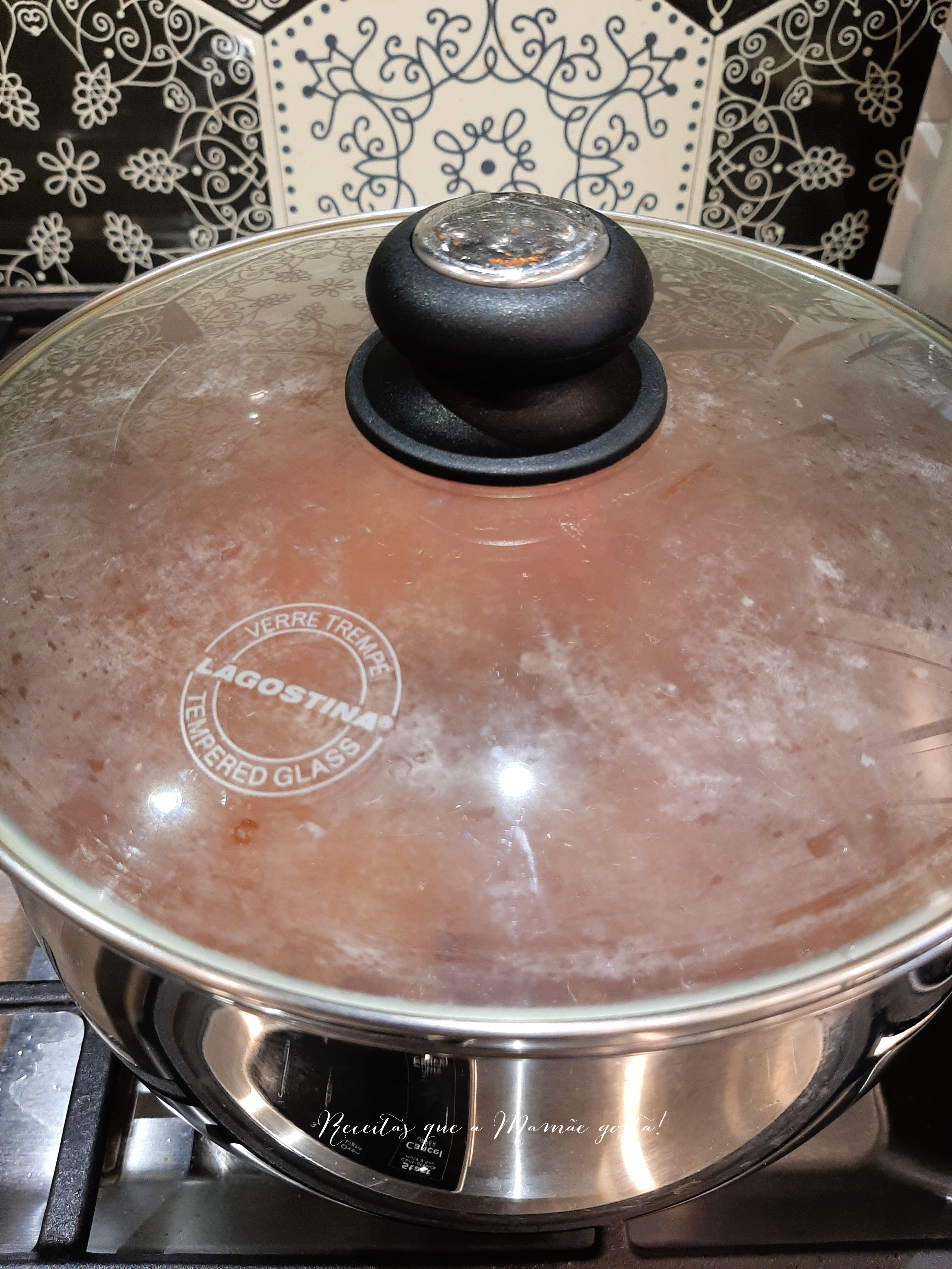 Quando começar a ferver, tampe a panela (que vai criar o vapor) e abaixe o fogo. Deixe cozinhando por 2 horas, mexendo ocasionalmente.