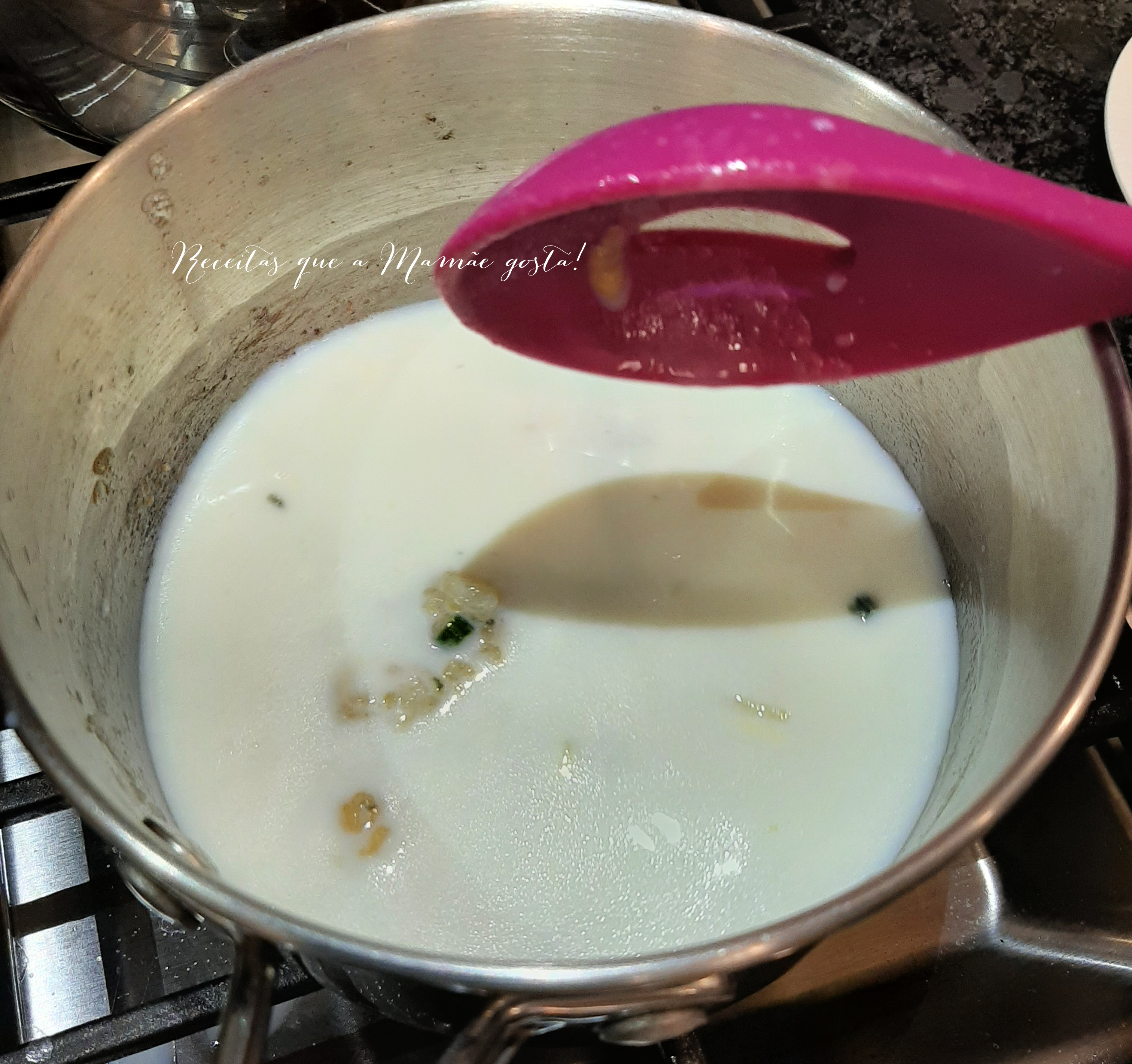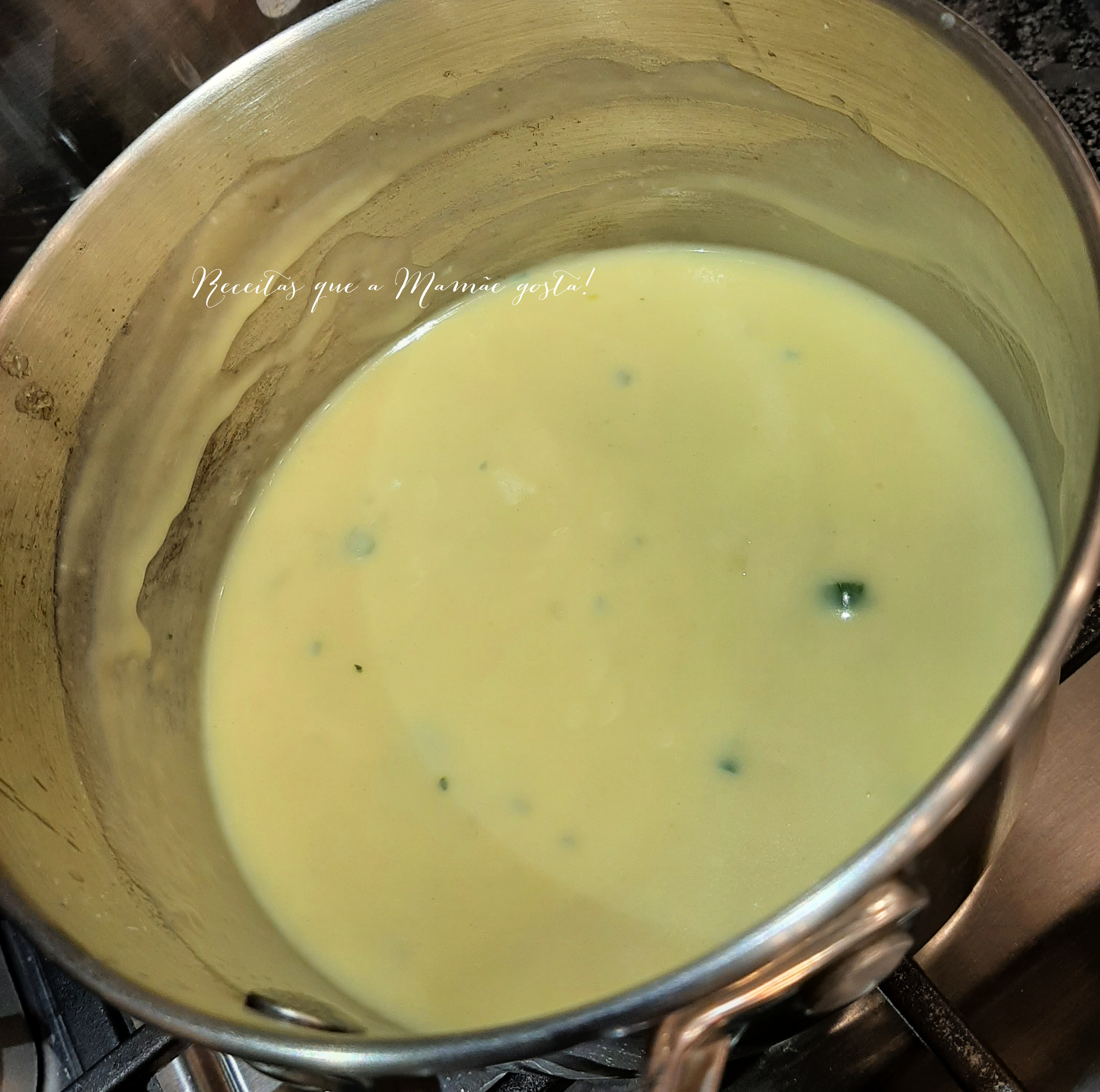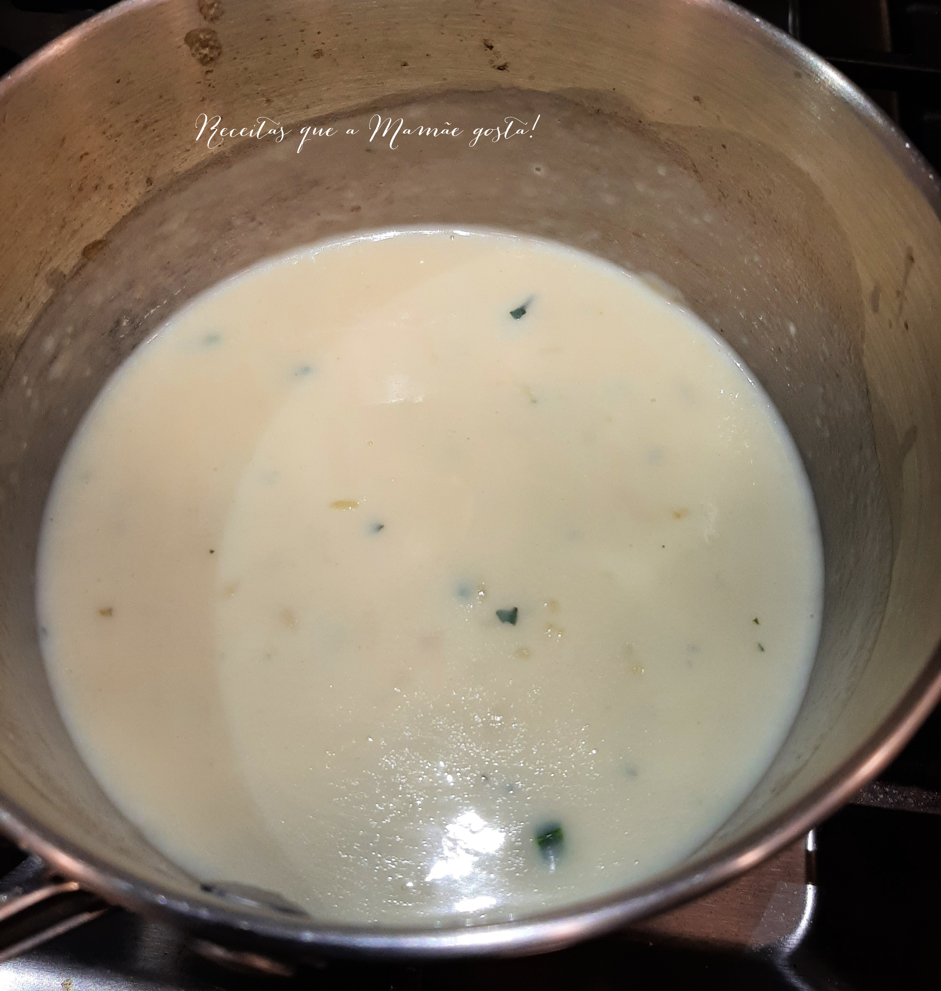 Numa panela, doure a cebola na manteiga. Adicione a farinha de trigo e incorpore misturando bem…