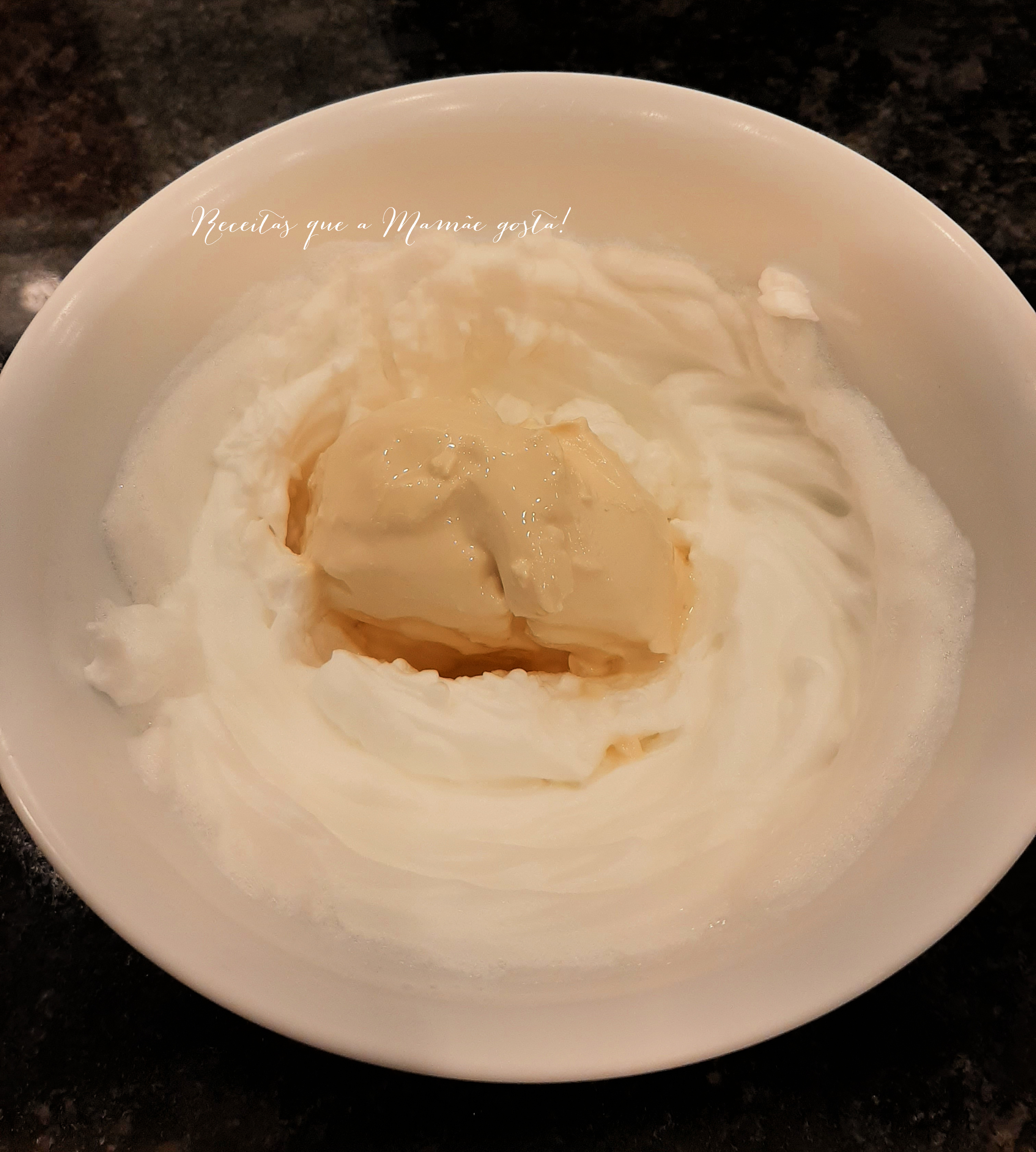Bata as claras em neve; adicione o creme de leite e misture bem.