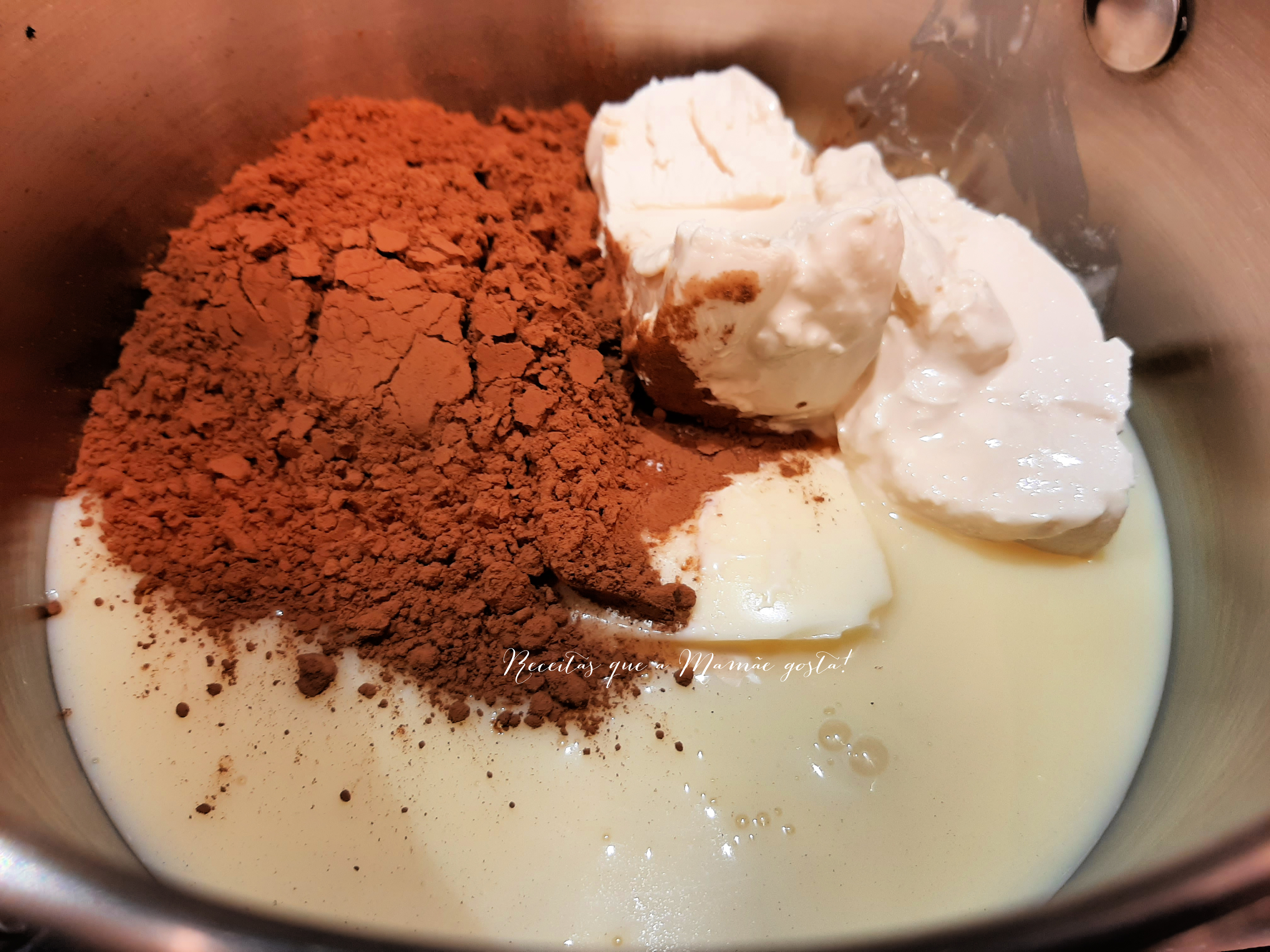 Prepare a cobertura, colocando numa panela o leite condensado, o chocolate, a margarina e o creme de leite. Misture e leve ao fogo baixo, mexendo até que desgrude do fundo da panela. Vai ficar um brigadeiro mole.