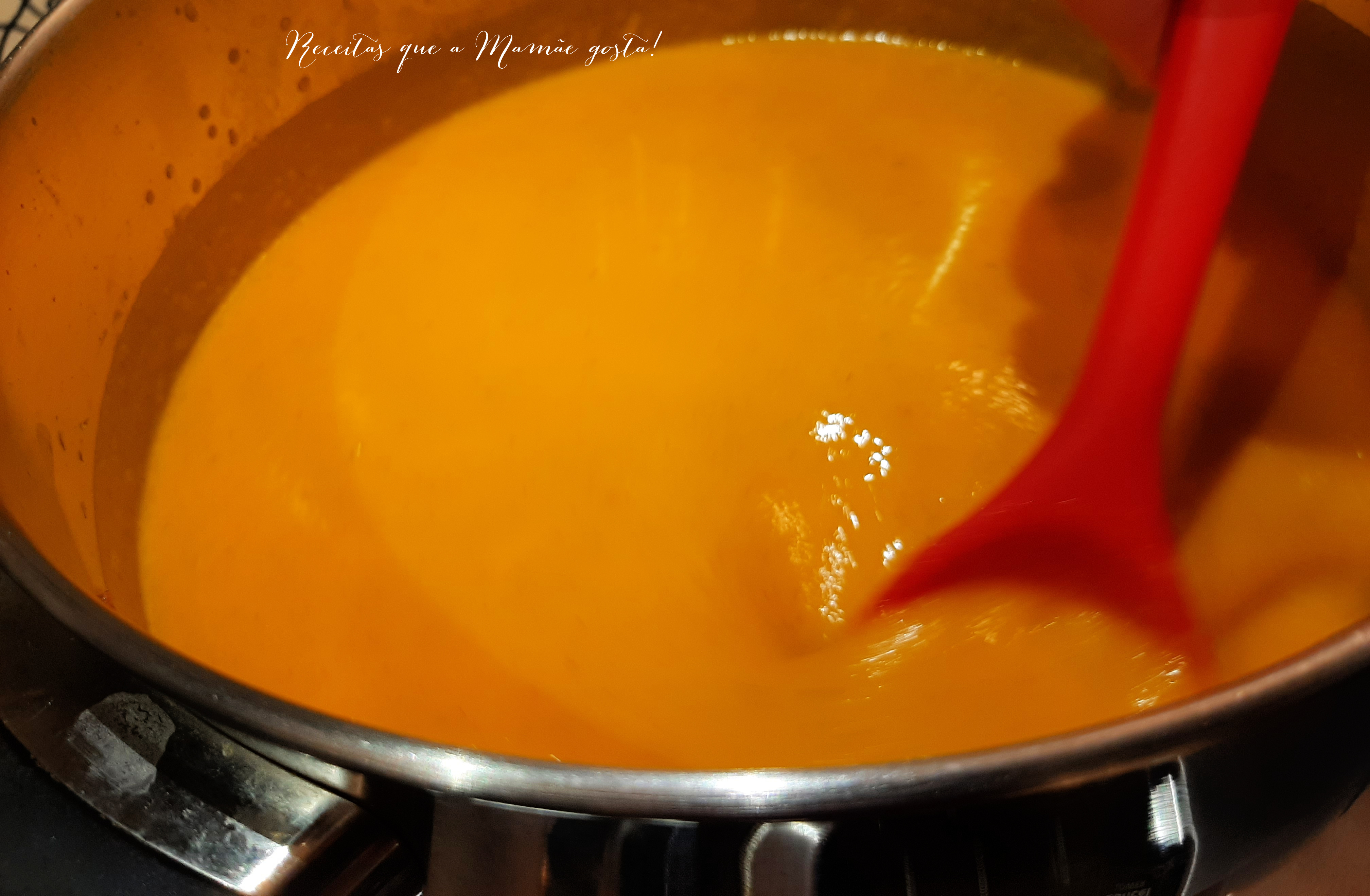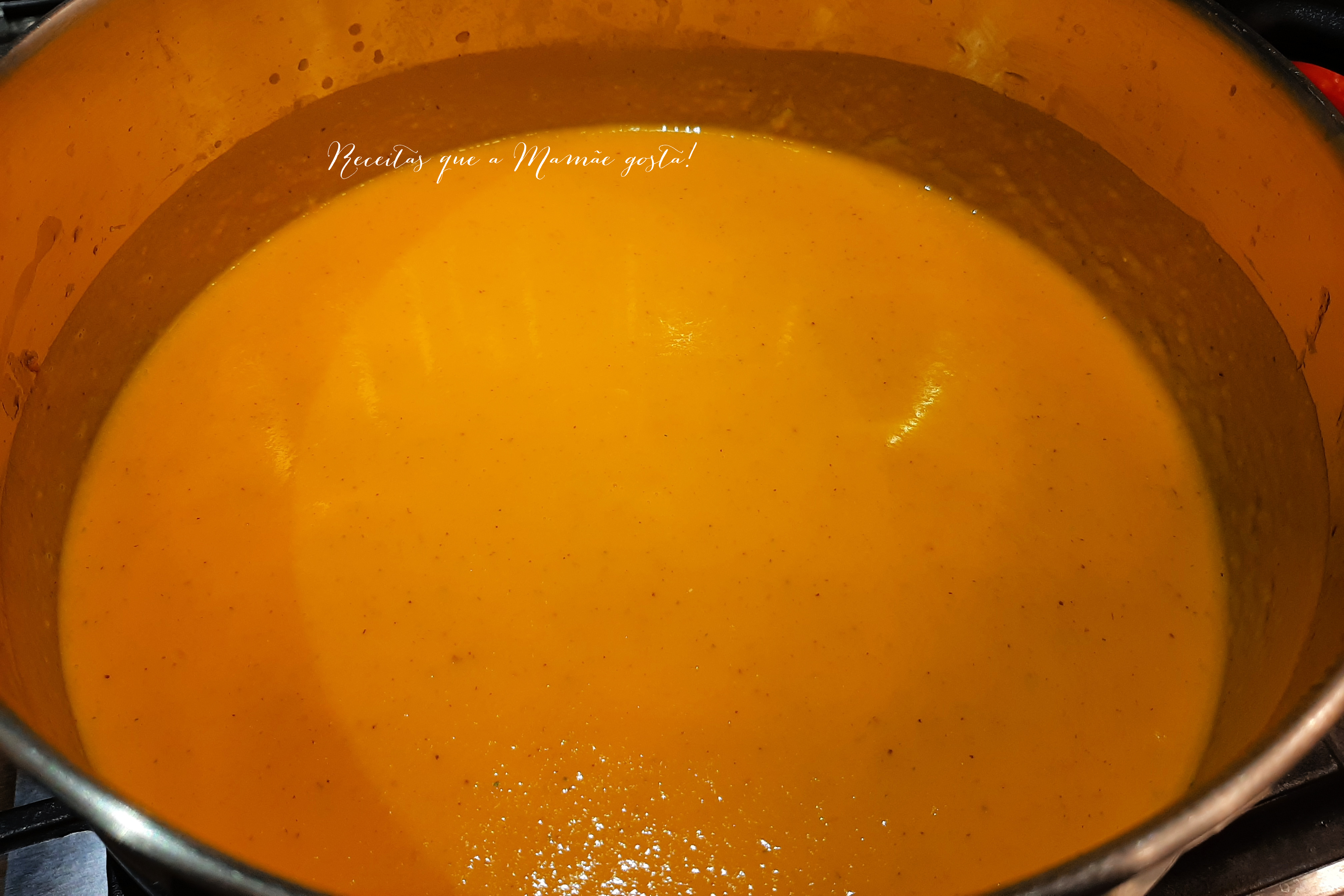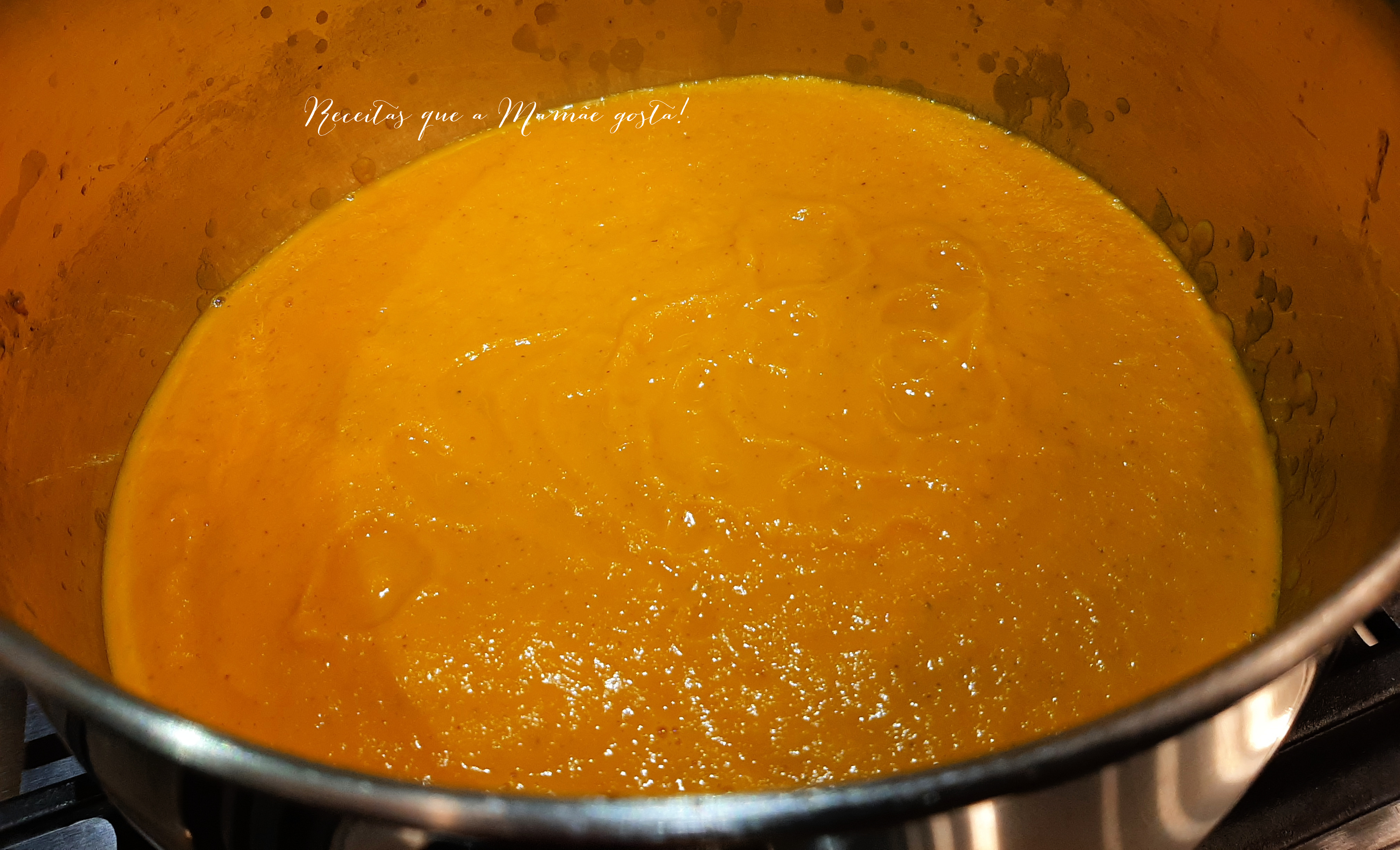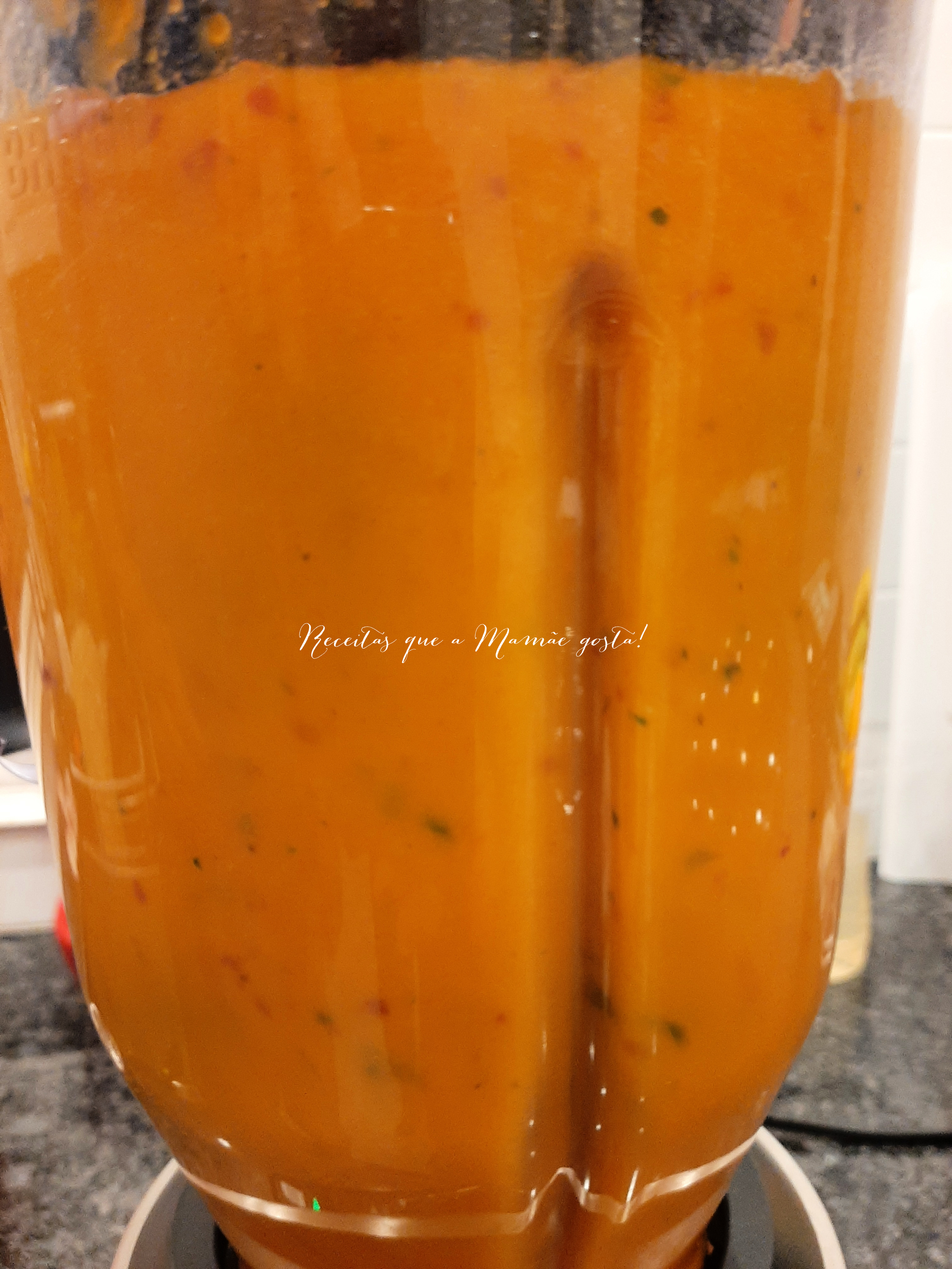 Adicione a mistura do refogado de temperos com o purê de cenoura no liquidificador e bata mais um pouco.